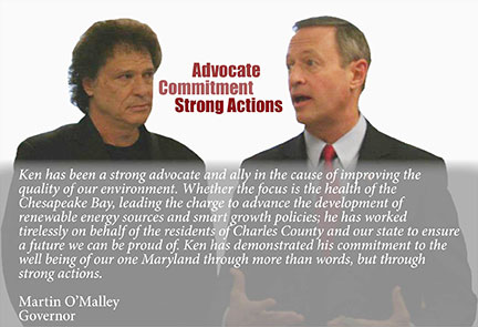 Ken Robinson feels that “the county needs to work toward reclaiming a future for the county; one where economic development is balanced with environmental stewardship and wise use of natural and cultural resources. “ He believes that by helping to reclaim Charles County ‘s future, it should help assure an improved quality of life for all the county residents.